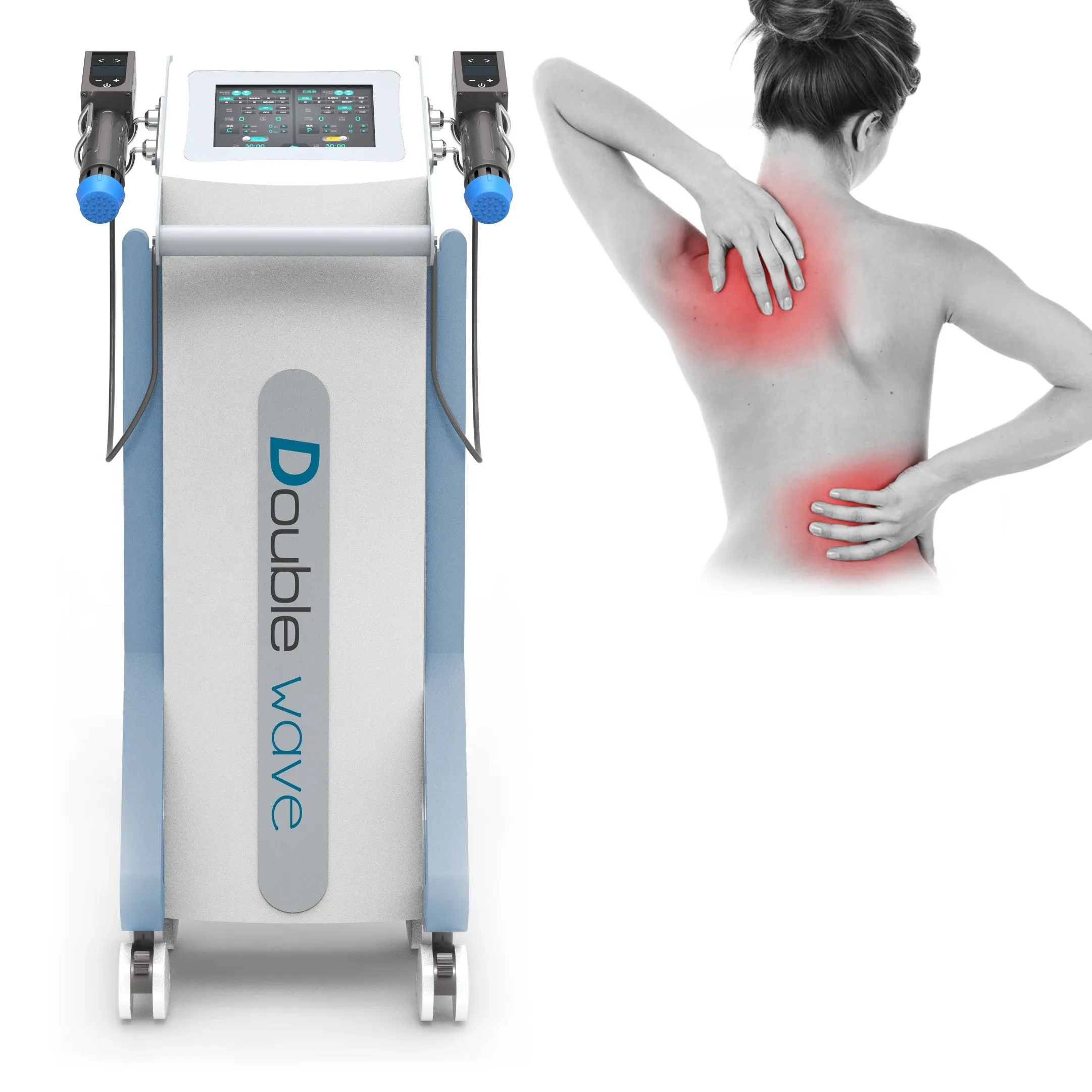 Dual channel electromagnetic shock wave is a new instrument. It can treat two people or two body parts at the same time.