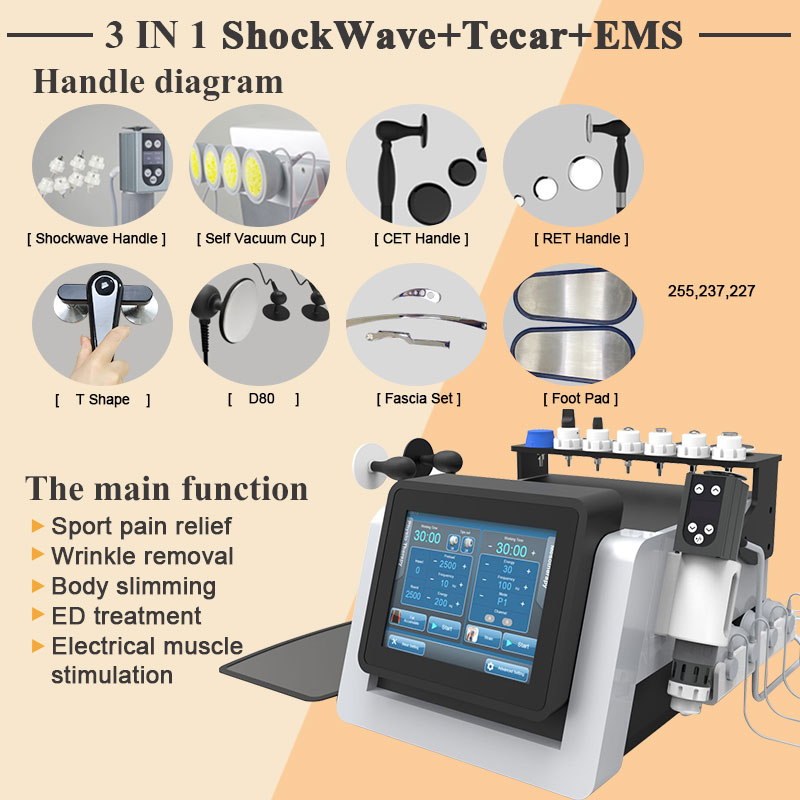 ems +shockwave + Tecar 3 in 1 for whole body therapy